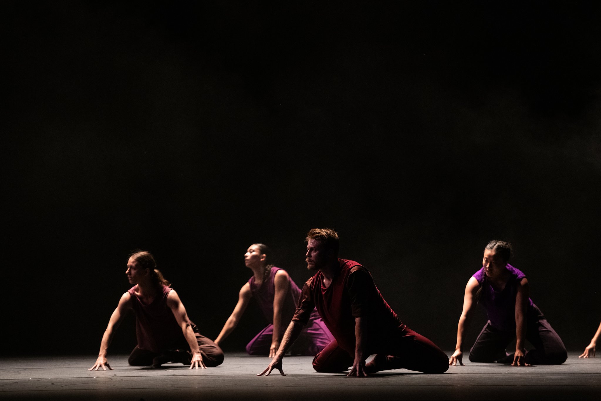 MYOKINE est une oeuvre rassembleuse pour sept interprètes qui explore comment la lumière émerge de l’obscurité et comment ces deux forces doivent coexister. Inspirée par les molécules régénératrices d’espoir libérées par les muscles en mouvement, Anne Plamondon transforme la scène en un espace chargé d’urgence, de résilience et d’espérance partagée. Les interprètes deviennent architectes, protecteurs et messagers d’un souffle vital, cherchant et offrant des éclats de clarté qui traversent les ténèbres. Par un mouvement à la fois puissant et lumineux, un groupe habité révèle la capacité du corps à guérir, à rassembler et à donner du sens - même dans l’obscurité.
